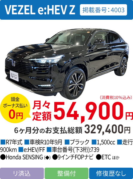 上記お支払い例は月間走行距離1,000kmの場合の参考例です。この条件を超えた場合、別途車種ごとの規定金額がお客様のご負担となります。また改造や事故の修復歴があった場合は別途規定の精算金額をご負担いただきます。